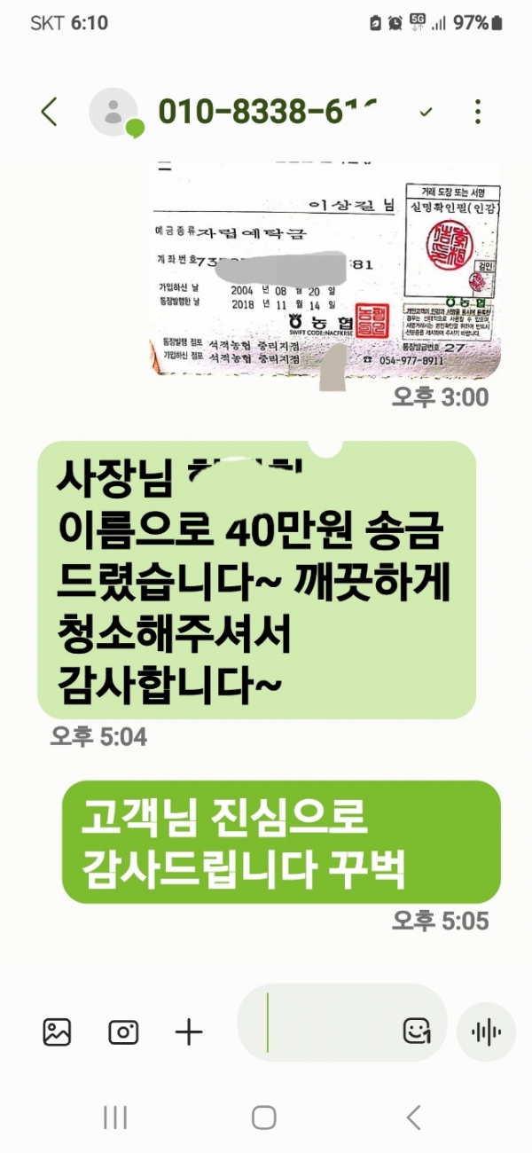 고객 문자후기 작성자 더홈케어구미 | 작성일24-06-27 21:00 관련링크 이전글 다음글 목록 글쓰기 본문 우미린 센트럴파크 고객님이 보내주신 문자입니다 이전글 고객문자후기 다음글 문자후기 댓글목록 등록된 댓글이 없습니다. 이전글 다음글 목록 글쓰기