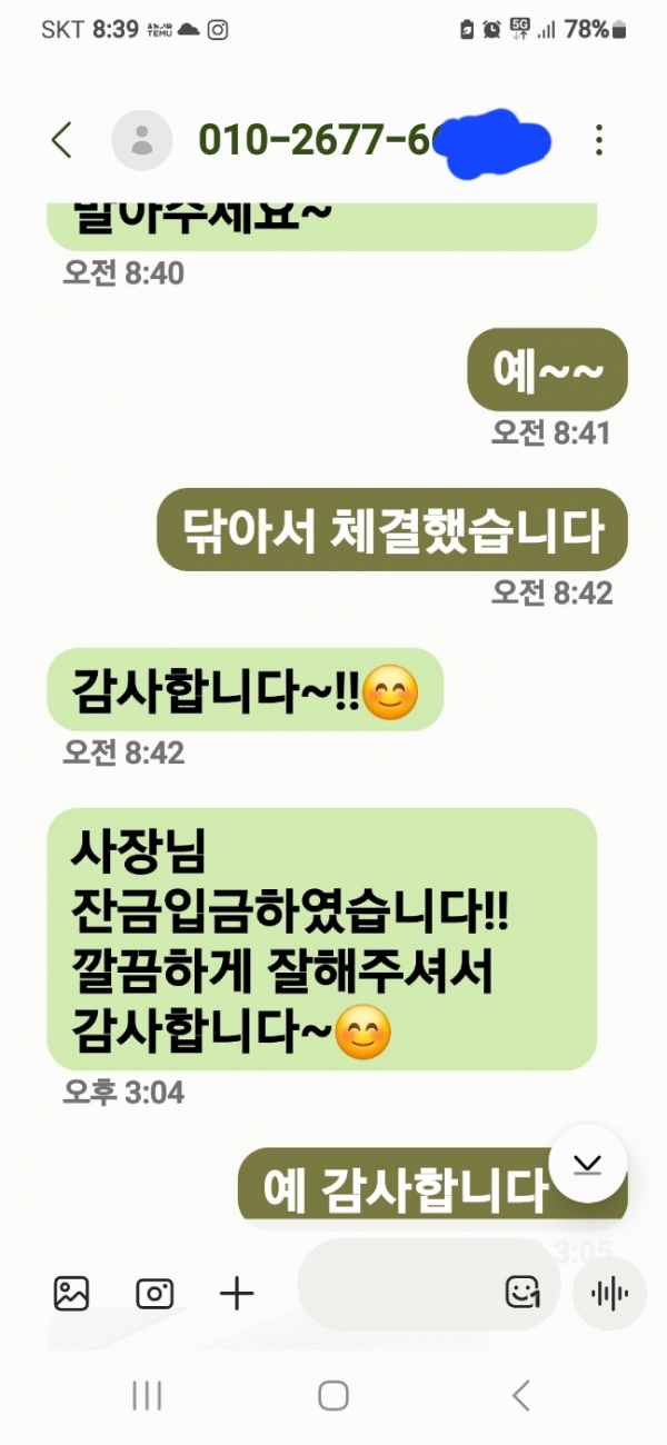 문자후기 작성자 더홈케어구미 | 작성일24-03-13 20:43 관련링크 이전글 다음글 목록 글쓰기 본문 중흥3차 에듀포레 고객님이 보내주신 문자입니다 이전글 문자 후기 다음글 문자후기 댓글목록 등록된 댓글이 없습니다. 이전글 다음글 목록 글쓰기